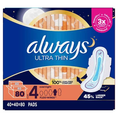 Always Ultra Thin Overnight Pads, Unscented - Size 4 (80 ct.)