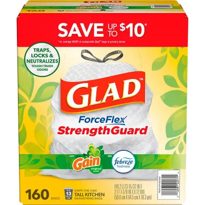 Glad ForceFlex 13-Gal. Kitchen Bags, Gain + Febreze (160ct.)